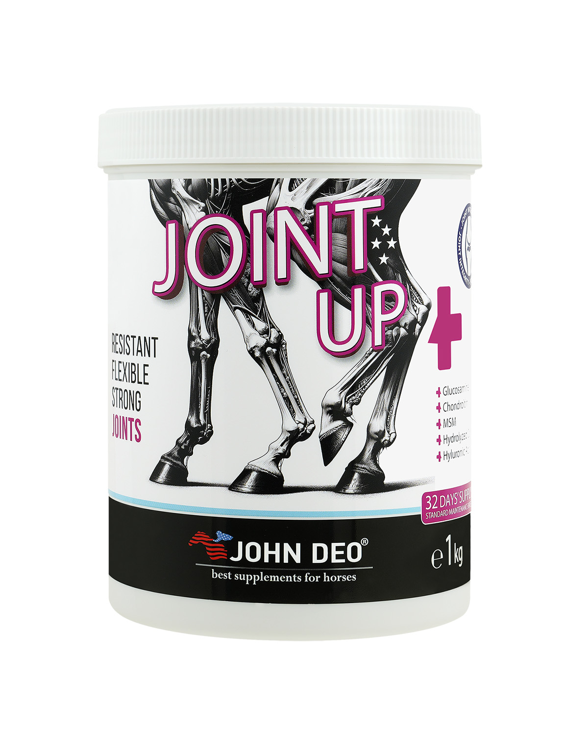 Joint-Up Safkan yarış atlarının ve tayların eklem desteği ve atletik yapısını destekleyen tamamlayıcı yemdir. Dengelenmiş kolayca emilen Glukozamin ve Kontroitin’in ile yüksek oranda kullanılmış MSM, Hyaluronik asit formülü hem kıkırdağın sağlığı hem de eklemi yağlayan sinovyal sıvıyı desteklemesine yardımcı olur.